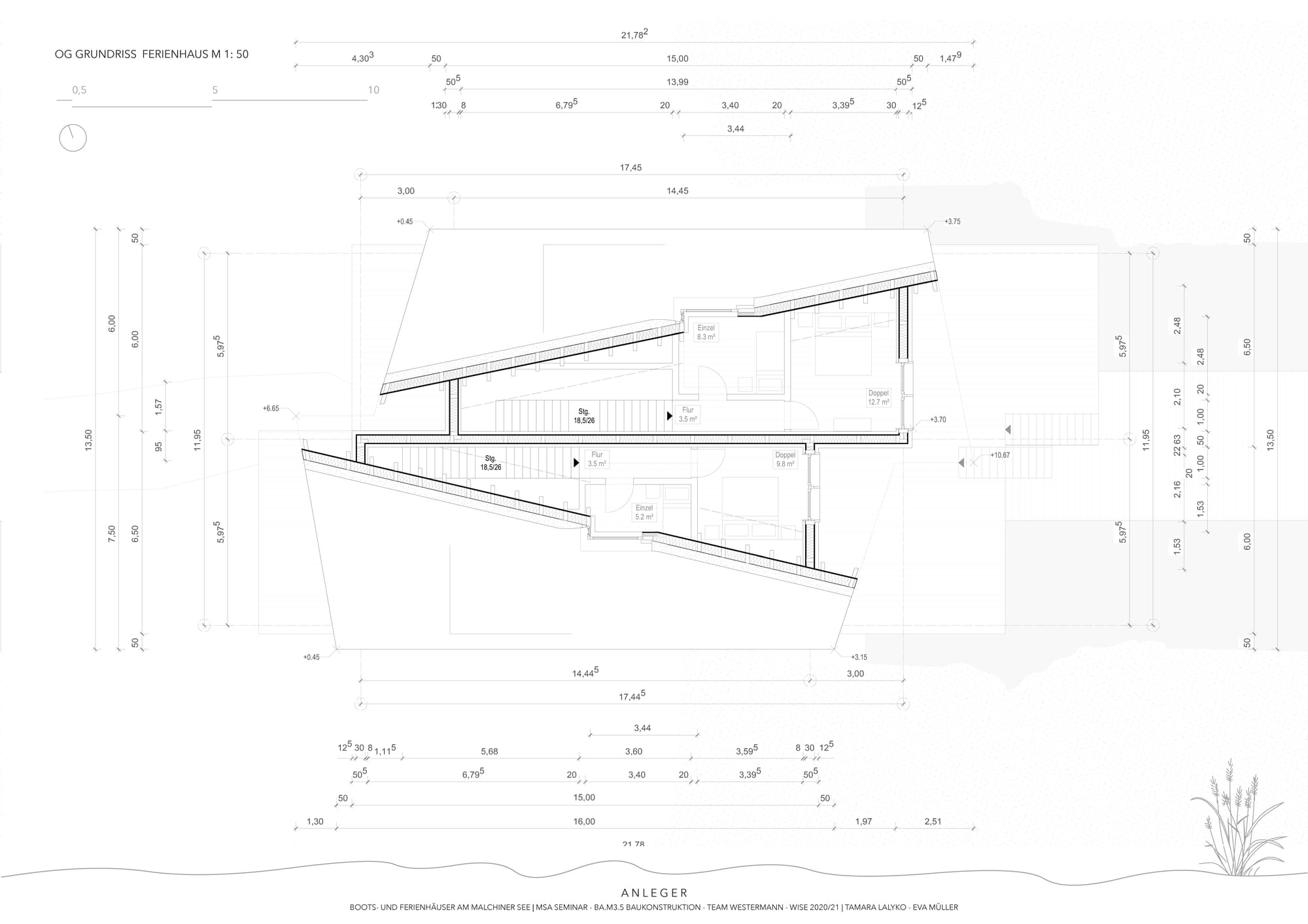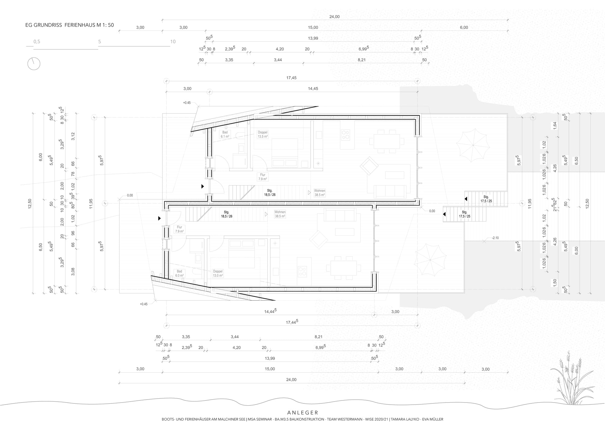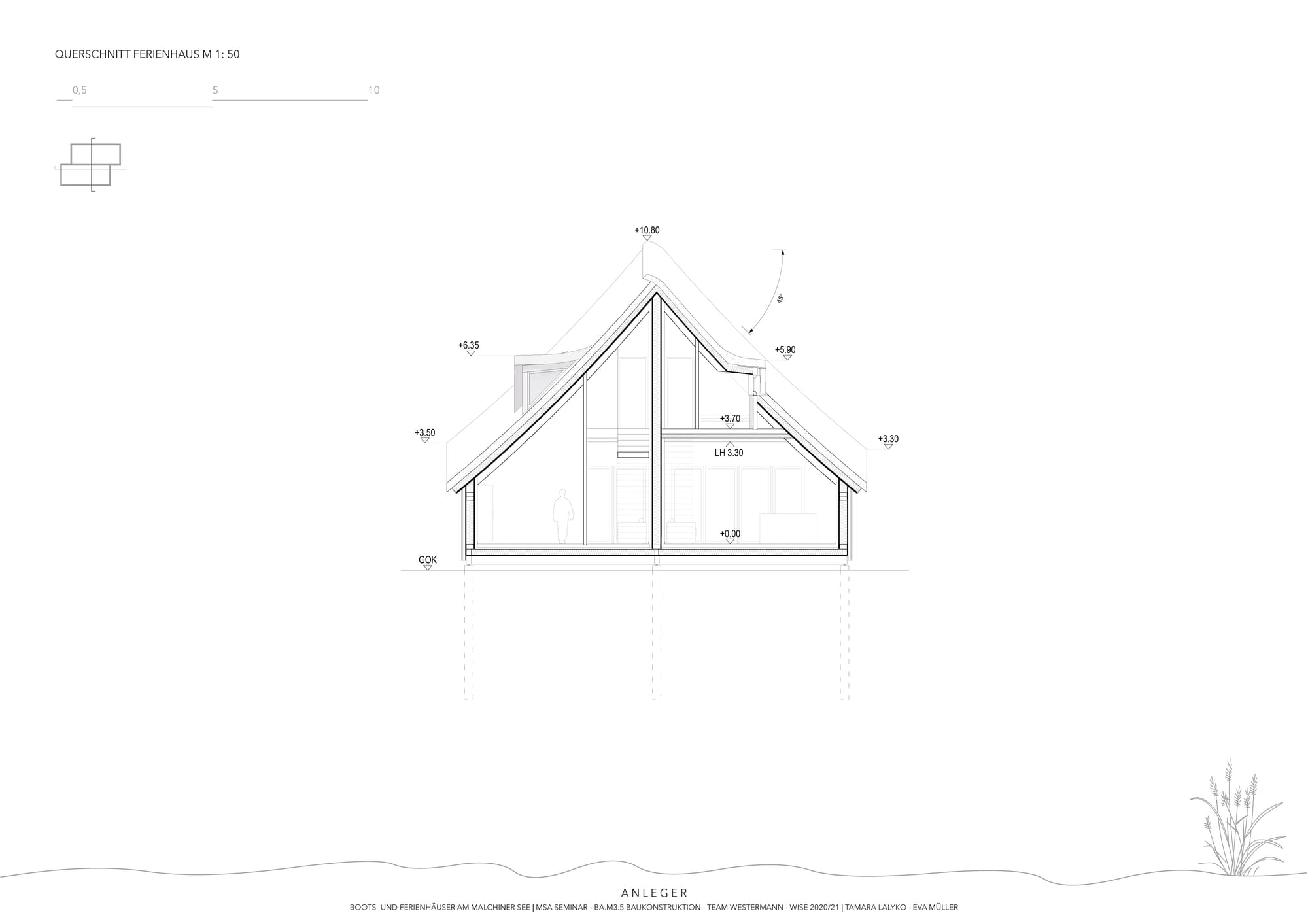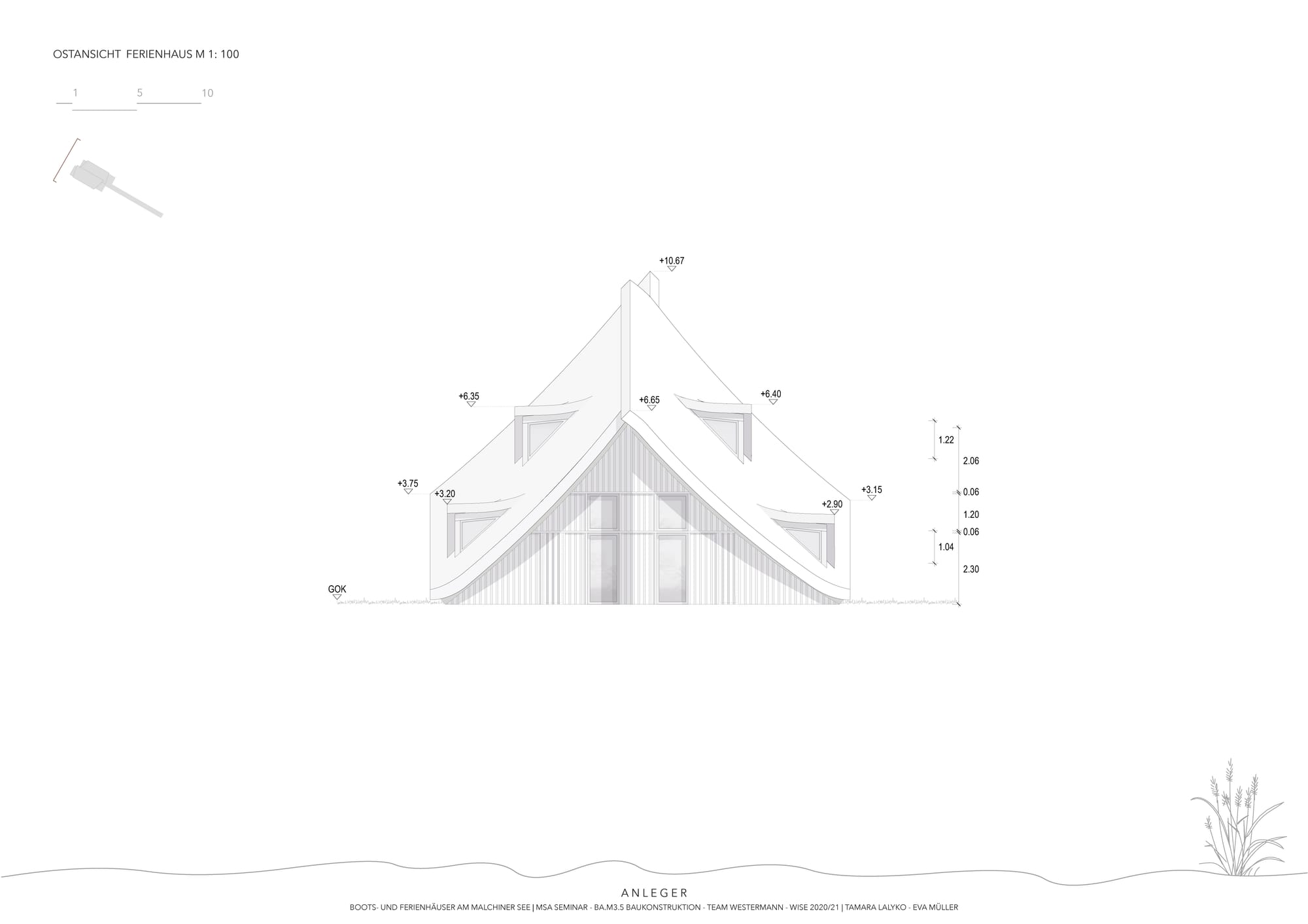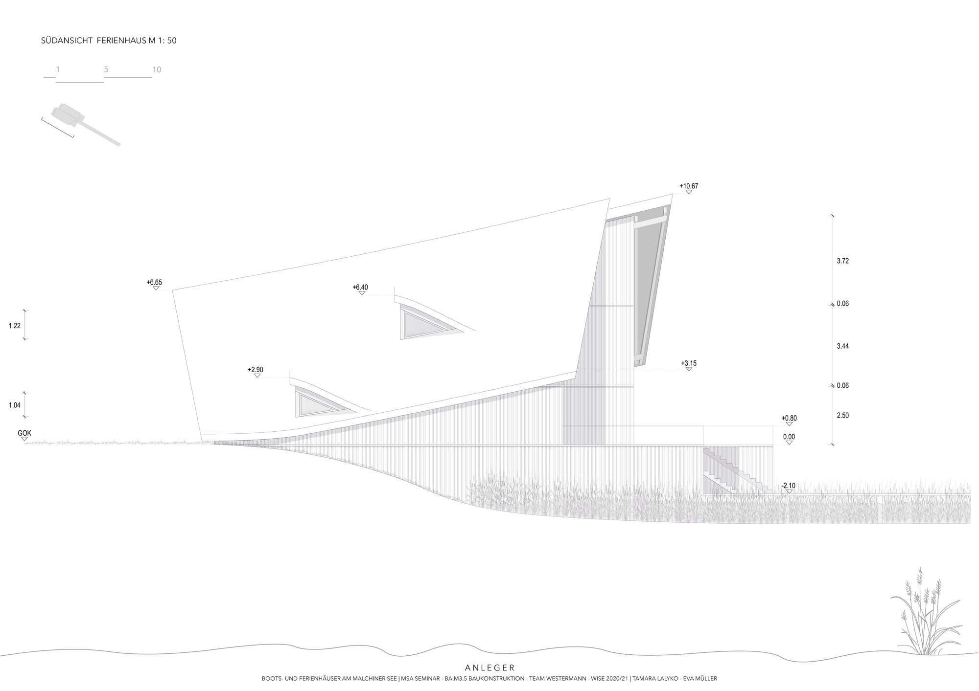 Right at Lake Malchin, part of the lake area of Mecklenburg, close to the village of Bristow, there is a desolate waterfront site surrounded by nature. Currently, several holiday houses built in the GDR times occupy the site. Each home includes