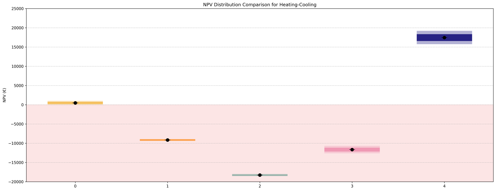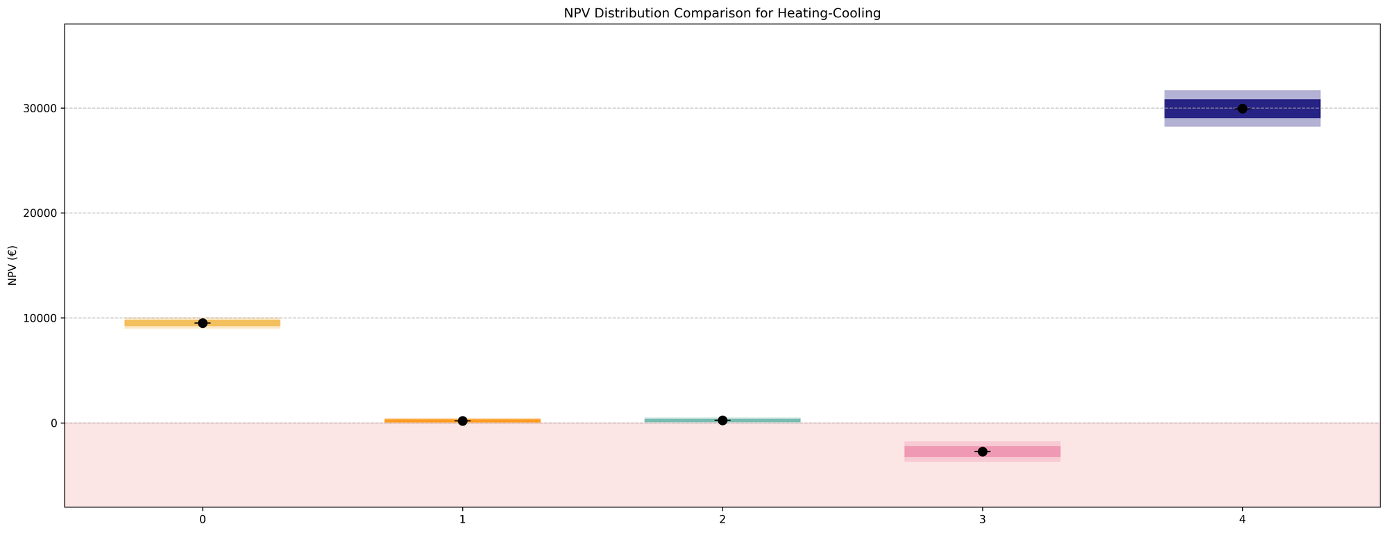 savings distributions for heating and cooling compared