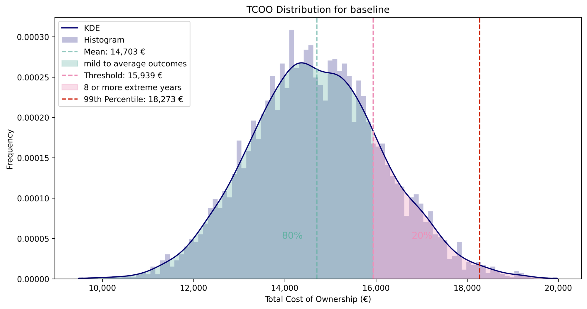 distribution of total cost of ownership and worst-case additional cost