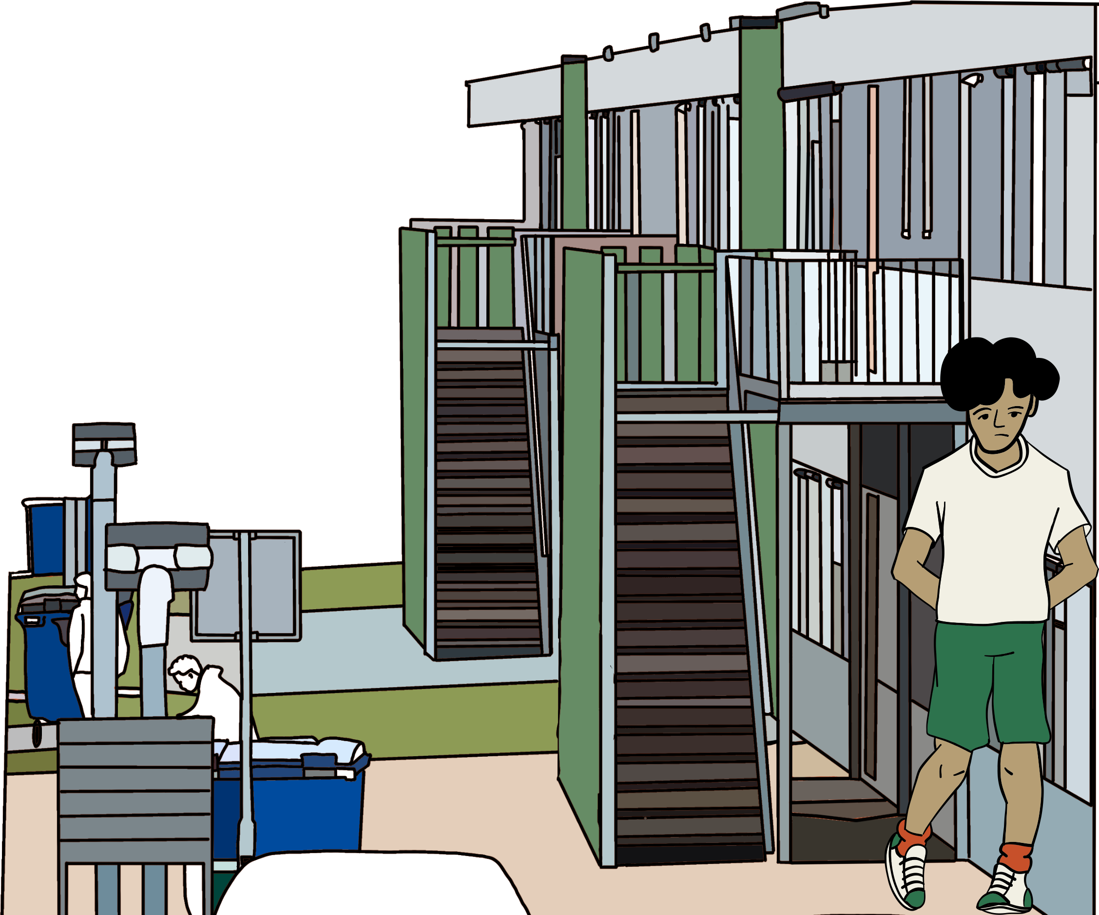 living together in a small reception center with little space for recreation. This