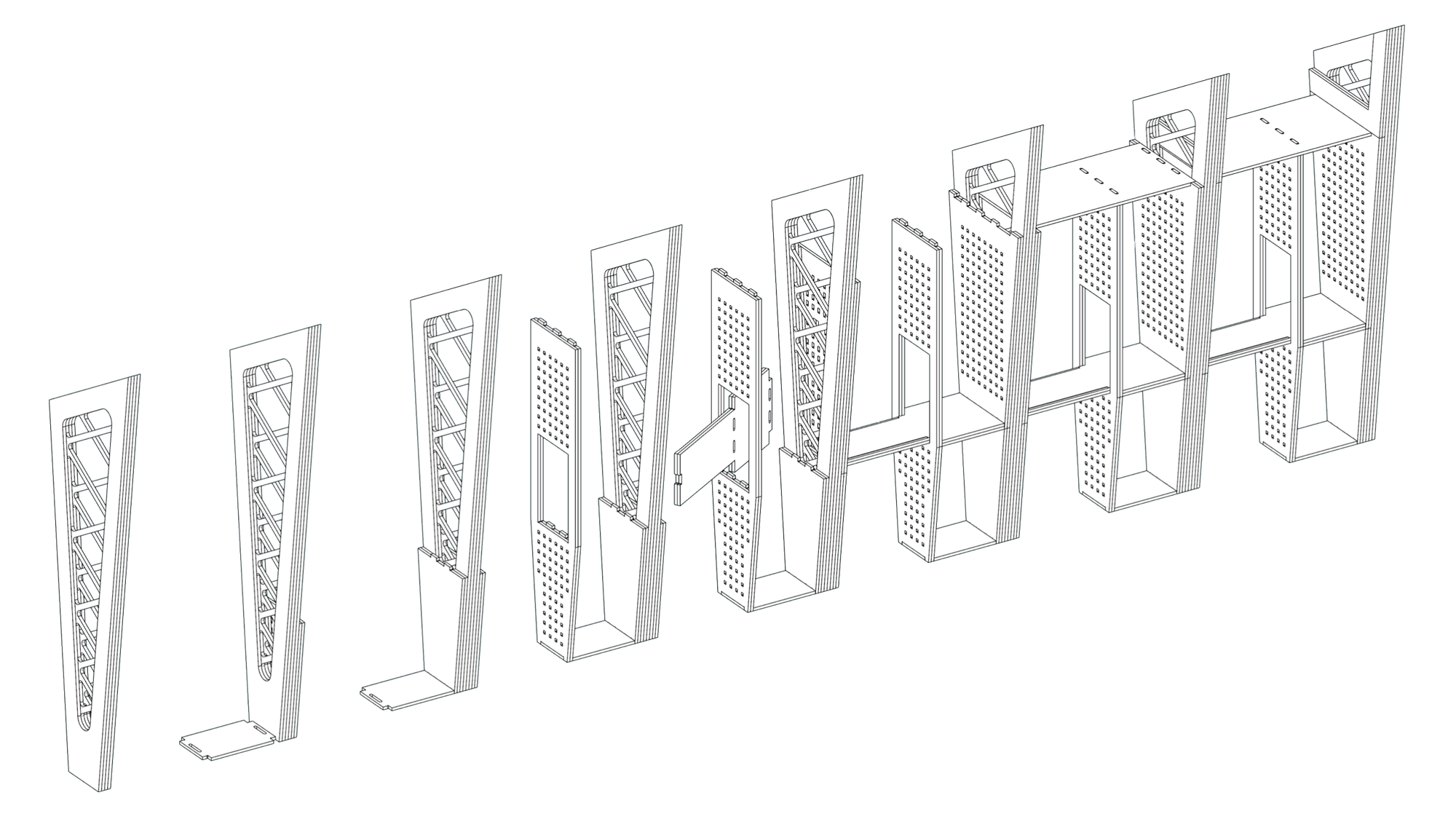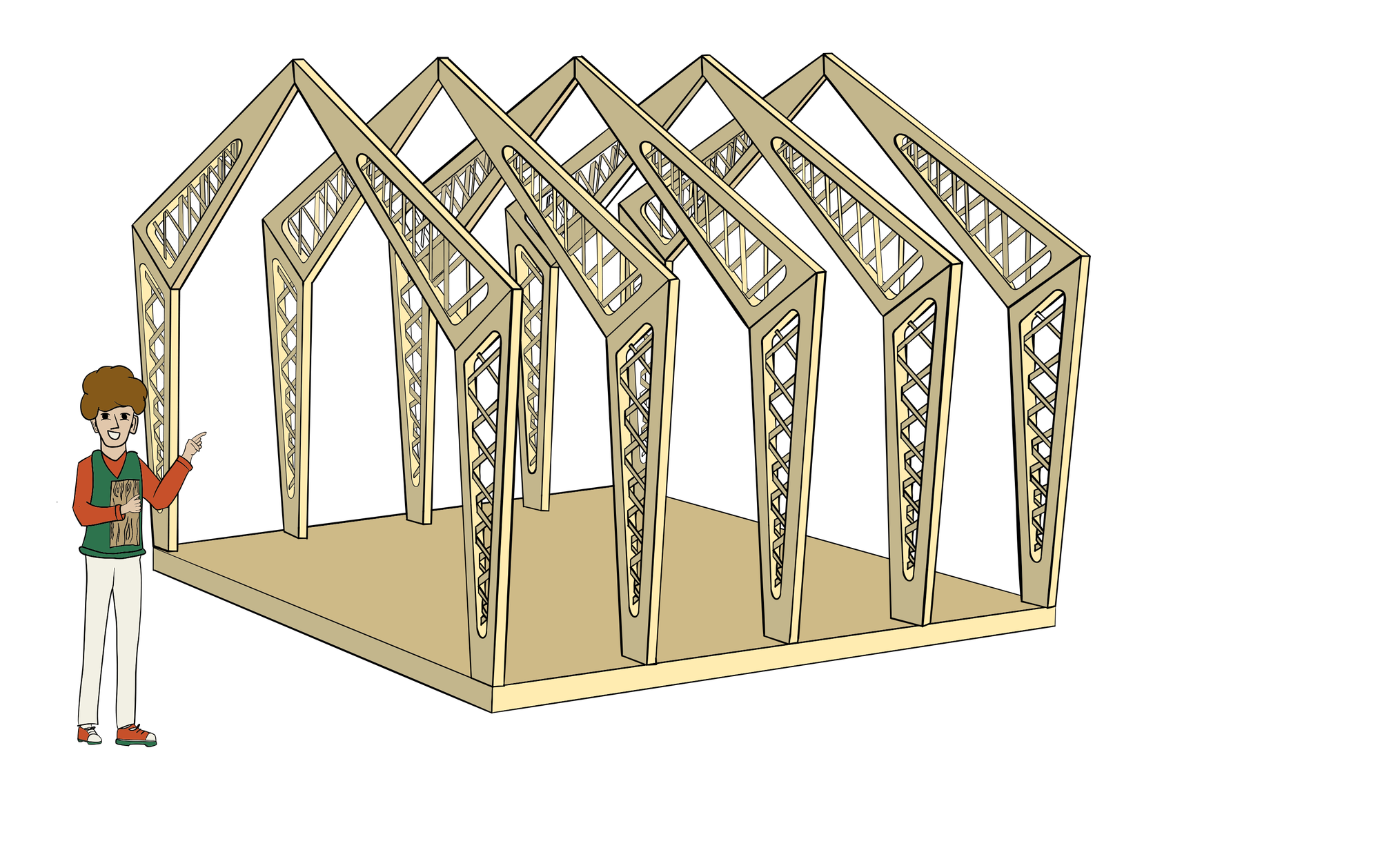 The provided pavilion structure consisted of timber plywood trusses arrayed