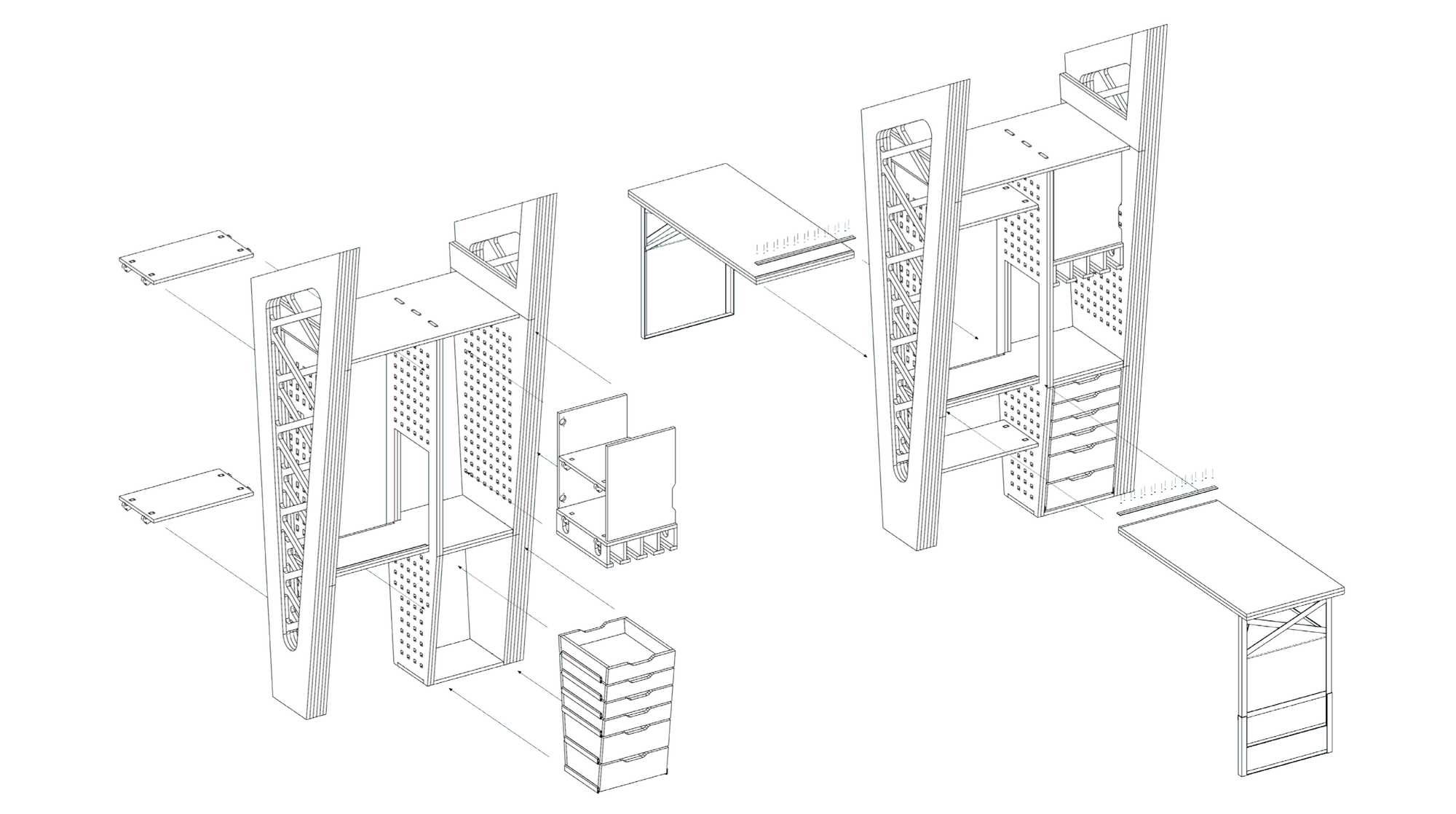 Our Flipshop is designed to be assembled out of CNC-milled 18mm plywood pieces